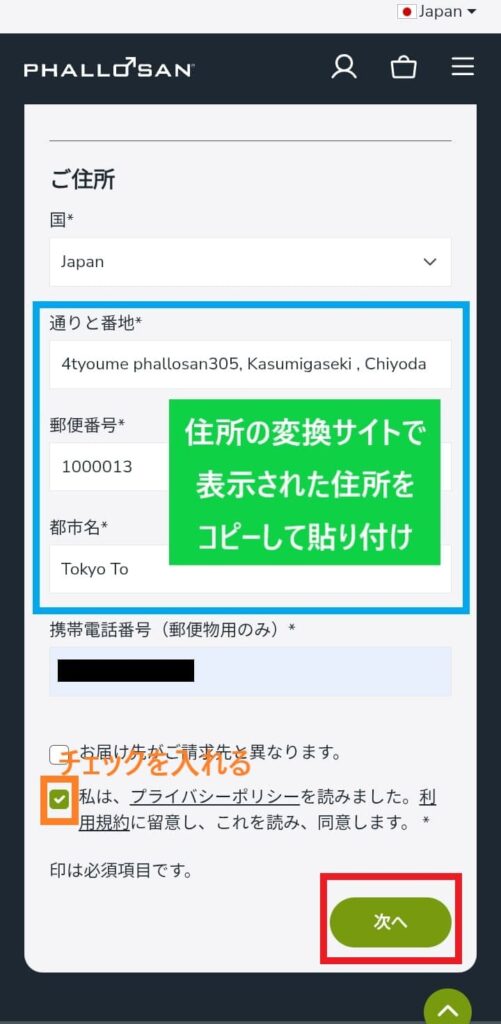 住所は、自分が注文したときはローマ字で入力しました。