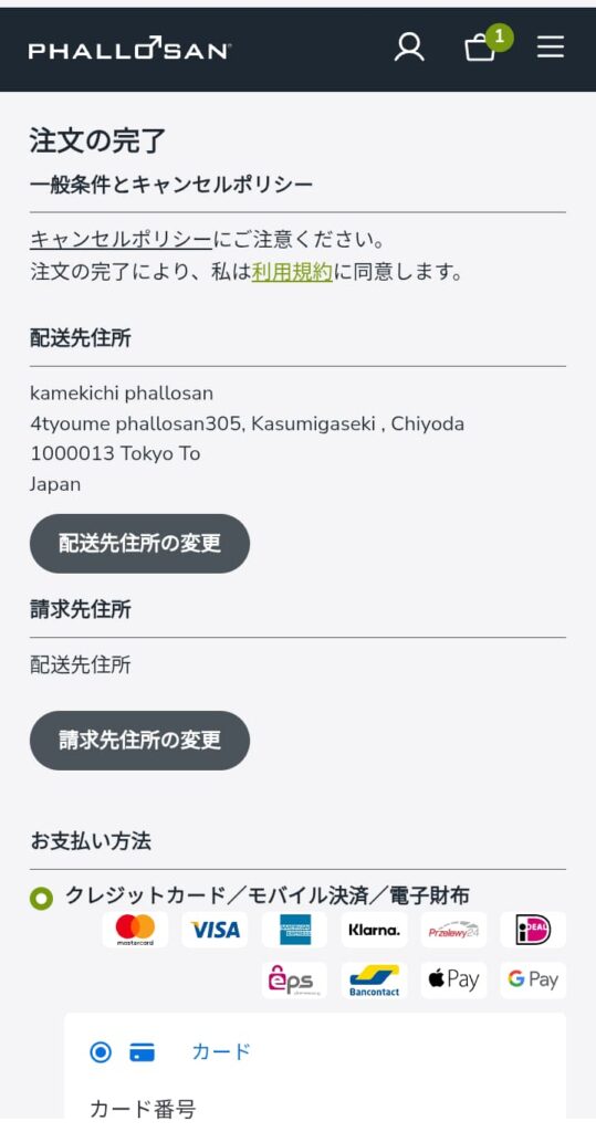 ※クレジットカードの場合、この後(注文確定前)にカード情報を入力します