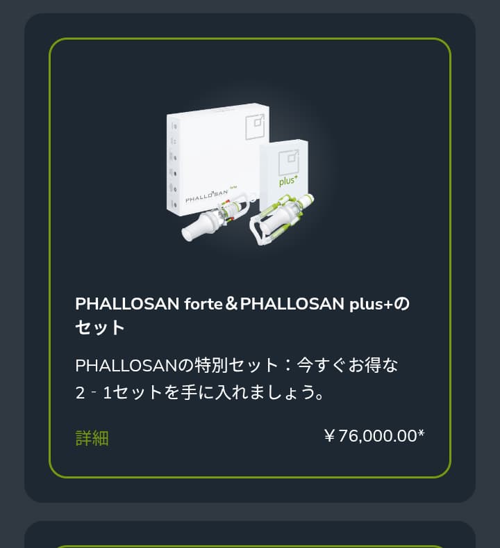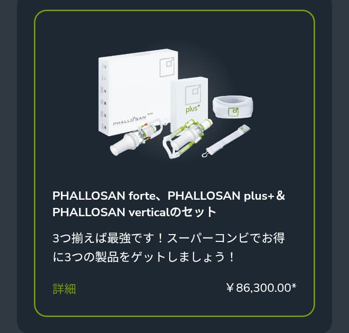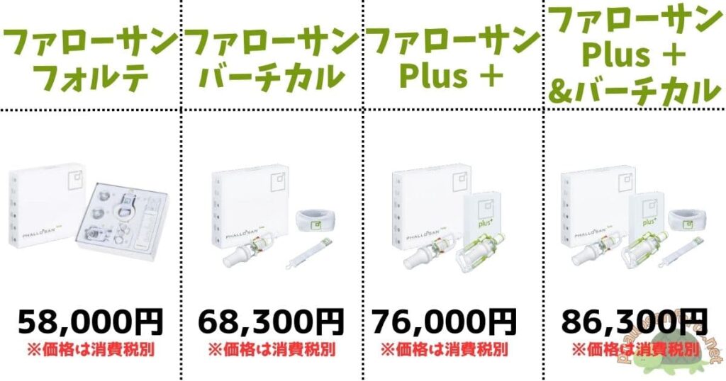 例えば、ファローサン・フォルテplus+のセットは、ファローサン本体に加え、ファローサン版のアンドロペニスのような牽引器具も、ついてくるといった感じですね。