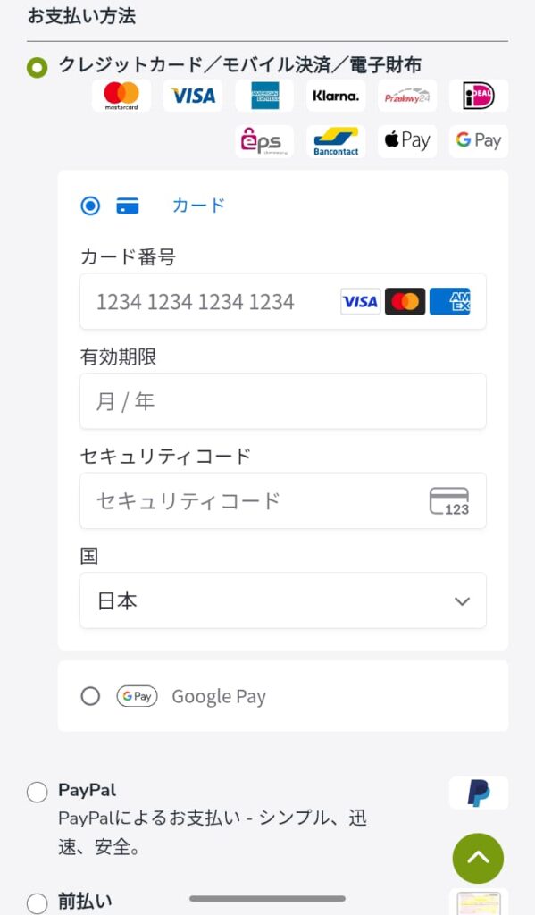 また、Google PayやApple Payでの決済も可能です。