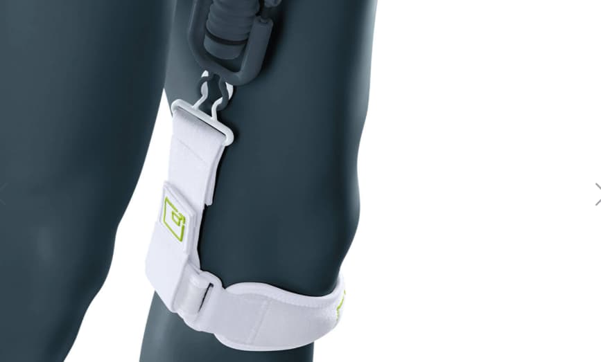 膝ベルトをつけて牽引することにより、下方向(垂直方向)の牽引が可能ですよ。